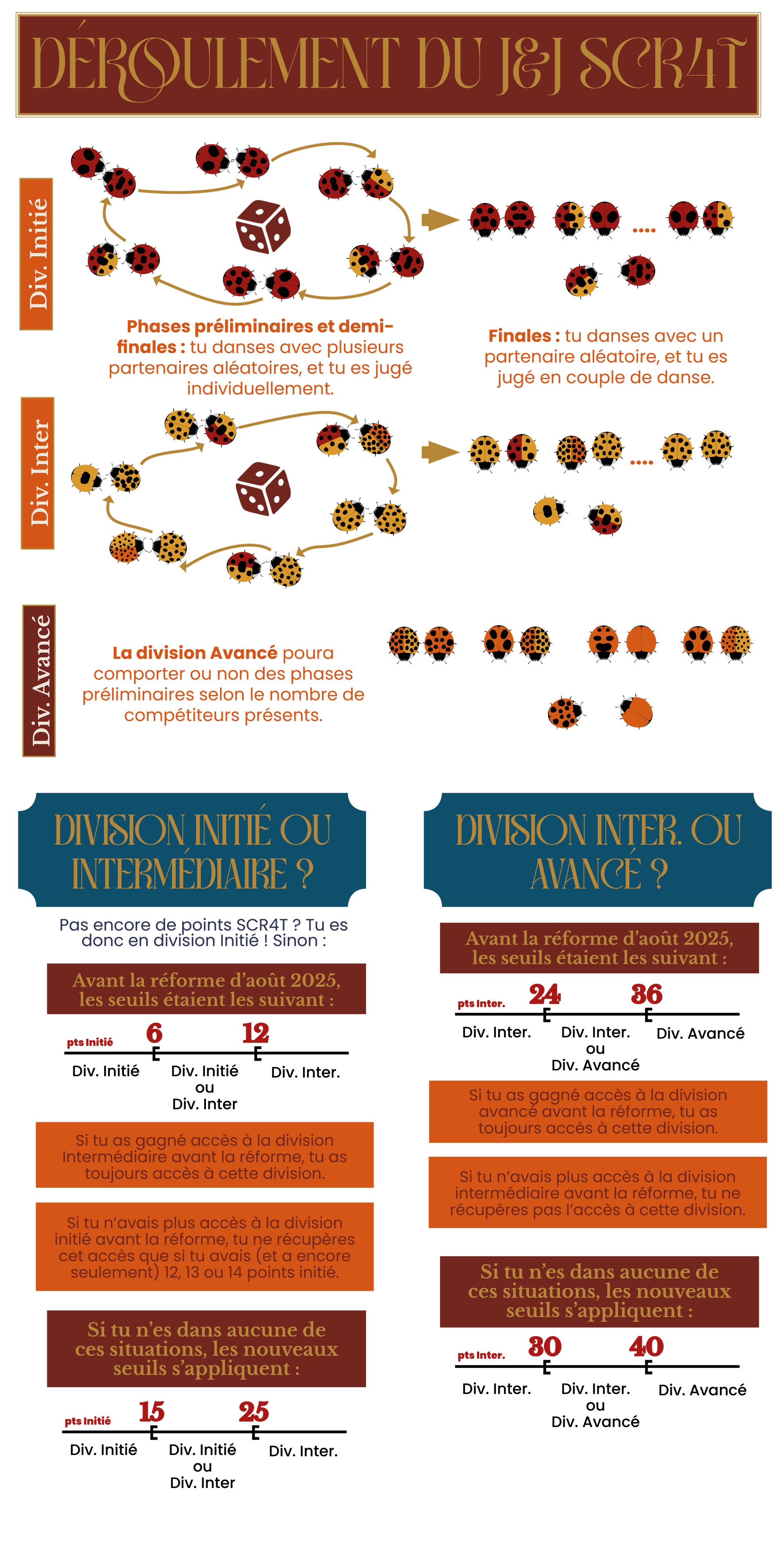 Le SCR4T, pour « Système Compétitif de Rock 4 Temps » est un système d’organisation de compétition pensé pour la communauté de Rock 4 Temps d’Île-de-France. L’objectif de ce système est de suivre les compétiteurs d’une compétition à une autre, en faisant de la compétition un parcours ludique et épanouissant. Pour cela, le SCR4T propose 3 choses :